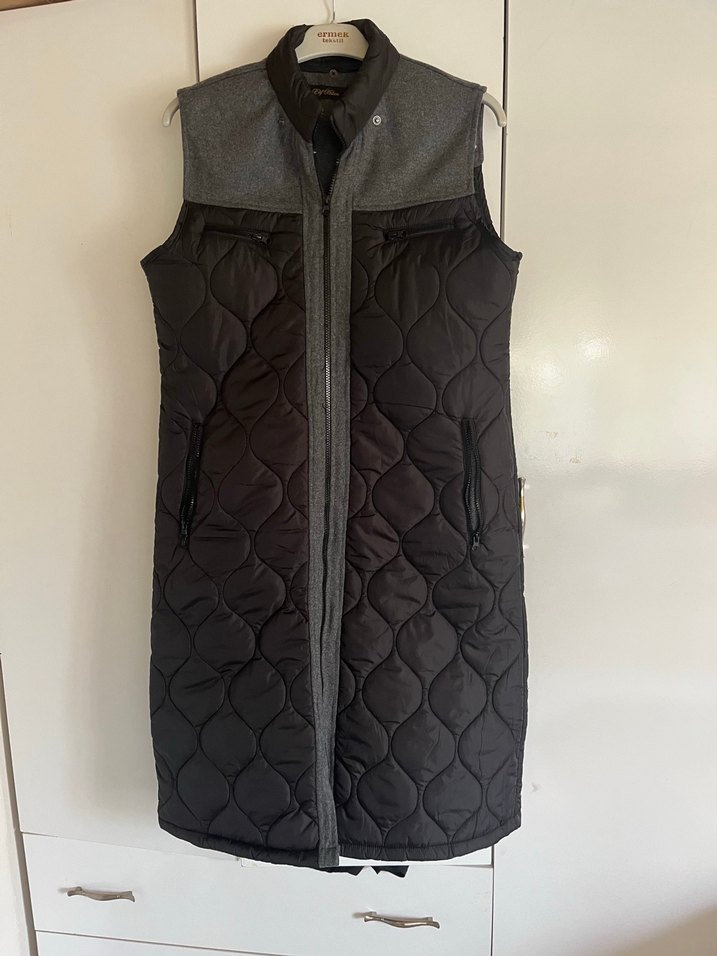 Kadın Gri Uzun Fermuarlı Yelek