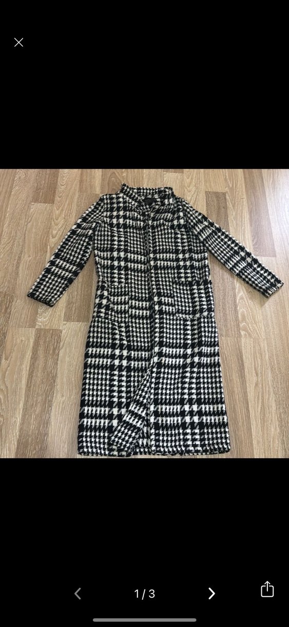 Kadınlar için uzun, kareli desenli ve kürk detaylı kaban. Notlu yaka ve uzun kollu, rahat kesim, yumuşak sentetik kumaştan üretilmiştir.