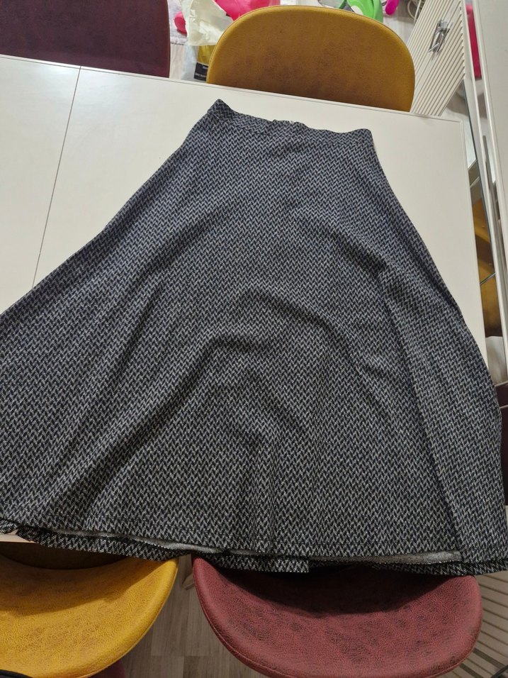 Kadınlar için gri renkte, sentetik kumaştan yapılmış, bol kesim uzun etek. Rahat ve bohem tarz için uygundur. Kışlık kumaş, yıkamadan dolayı çok az tülerme var