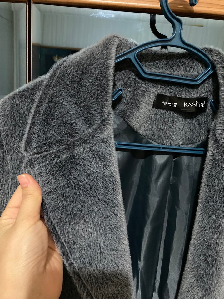 Bu gri suni tay tüyü kürklü, uzun kollu ve yakalı ceket, yumuşak fleece kumaştan olup sokak stiline uygundur. Günlük kullanım için idealdir. ❄️