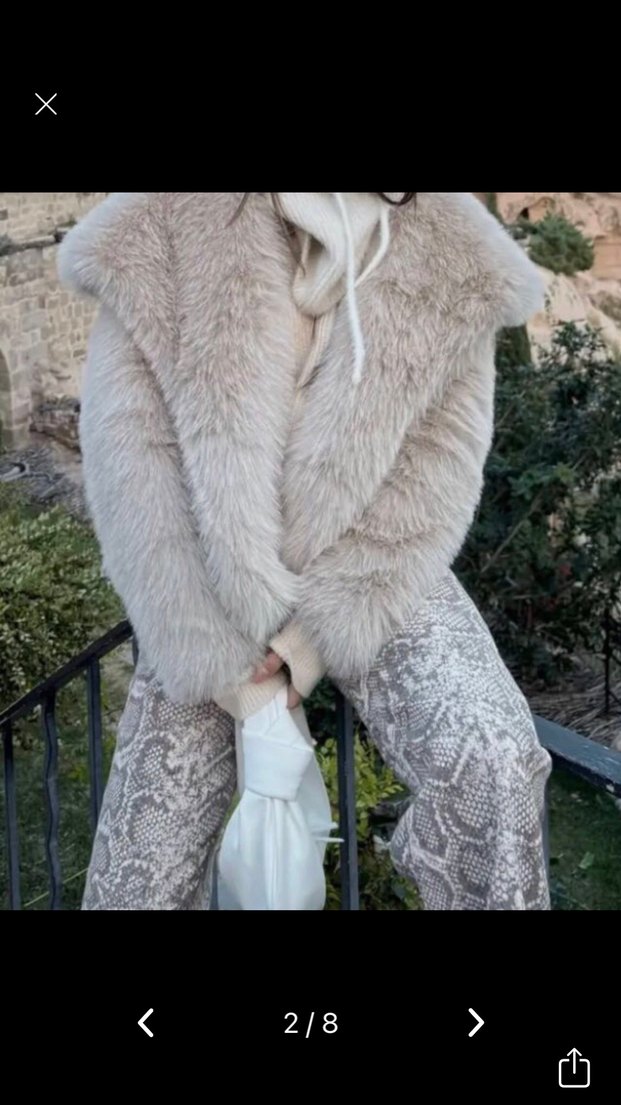 Kadınlar için gri renkli, uzun ve bol kesim sentetik kürk detaylı ceket. Yüksek yakalı ve uzun kollu, rahat ve trend sokak stili için uygundur.