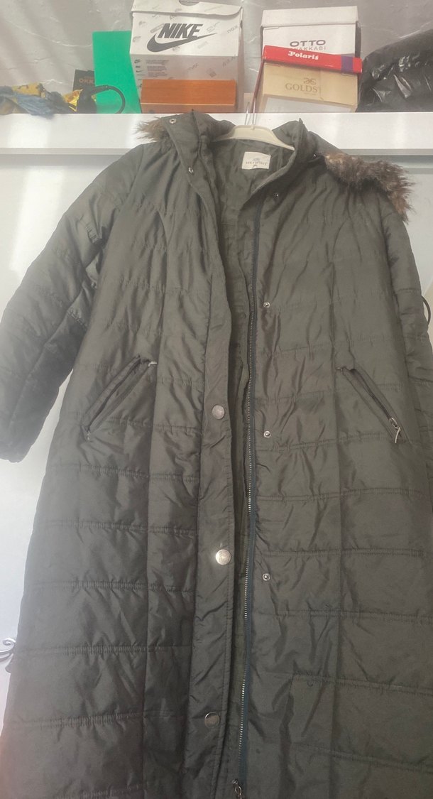 Kadın Gri Uzun Kürklü Kış Montu 42 bed ufak kusurları var