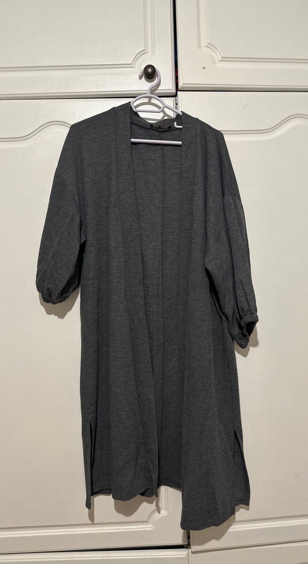 Kadın Pamuk kumaştan, gri renkte, uzun kollu ve salaş kesimdir. Minimalist stilde, yakası kesik ve drapeli, günlük kullanıma uygundur.