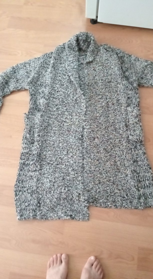 Kadınlar için uzun kesim ve bol kalıplı, yumuşak triko kumaştan yapılmış gri renkte, desen içermeyen, uzun kollu ve boğazlı hırka. Rahat ve günlük kullanıma uygun.