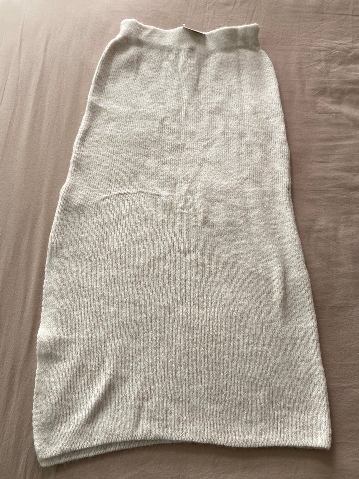 Yumuşak keten kumaştan örülmüş, düz gri renkte, rahat ve basic tarzda, kadınlar için uzun ve dar kesim triko etek.