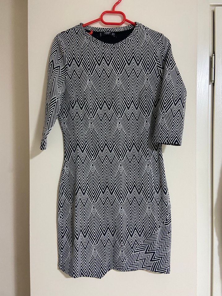 Gri renkte, V yaka ve uzun kollu, triko dokulu, normal midi boyda, hafif yılan deseni olan, trend sokak stiline uygun kadın elbisesi.