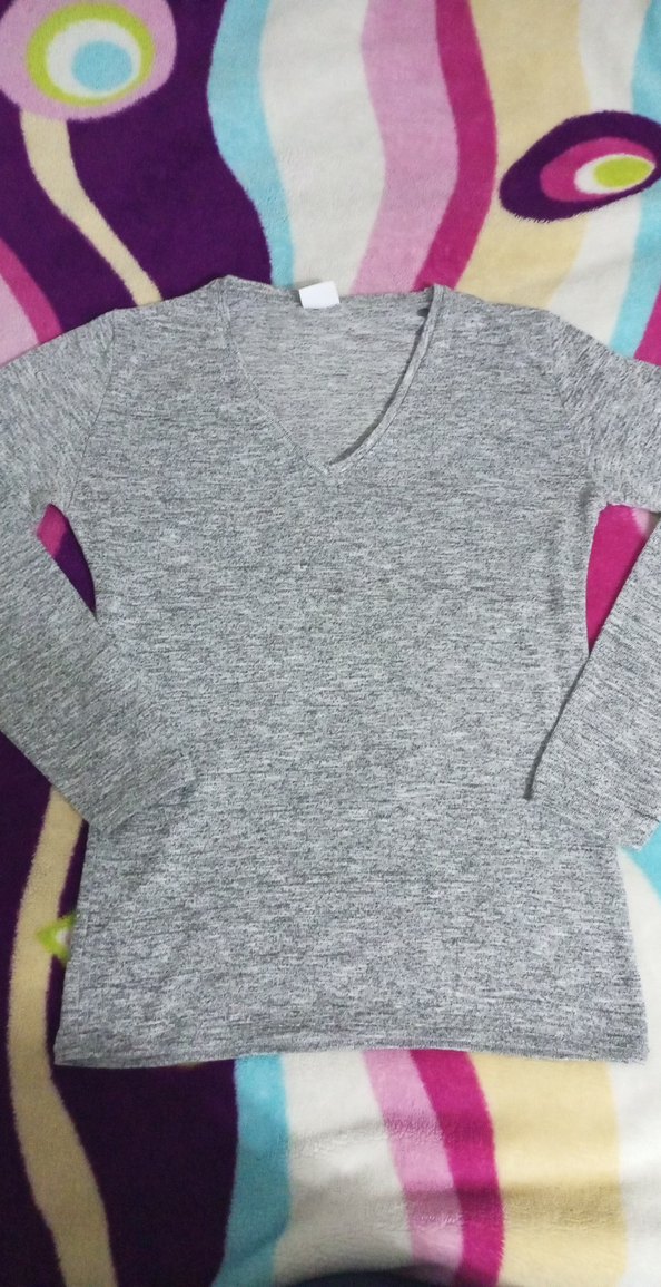 Kadın Gri V Yakalı Uzun Kollu Triko Kazak