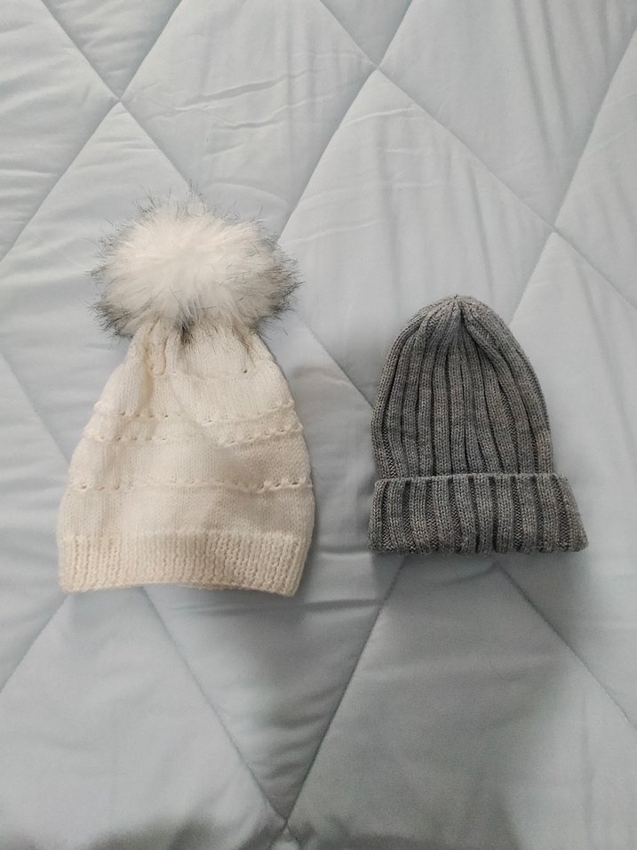 Gri ve beyaz renklerde, örgü kumaştan yapılmış iki bere. Beyaz bere üzerinde ponpon bulunmaktadır, rahat ve sıcak bir tasarıma sahiptir. ikisi tek fiyat