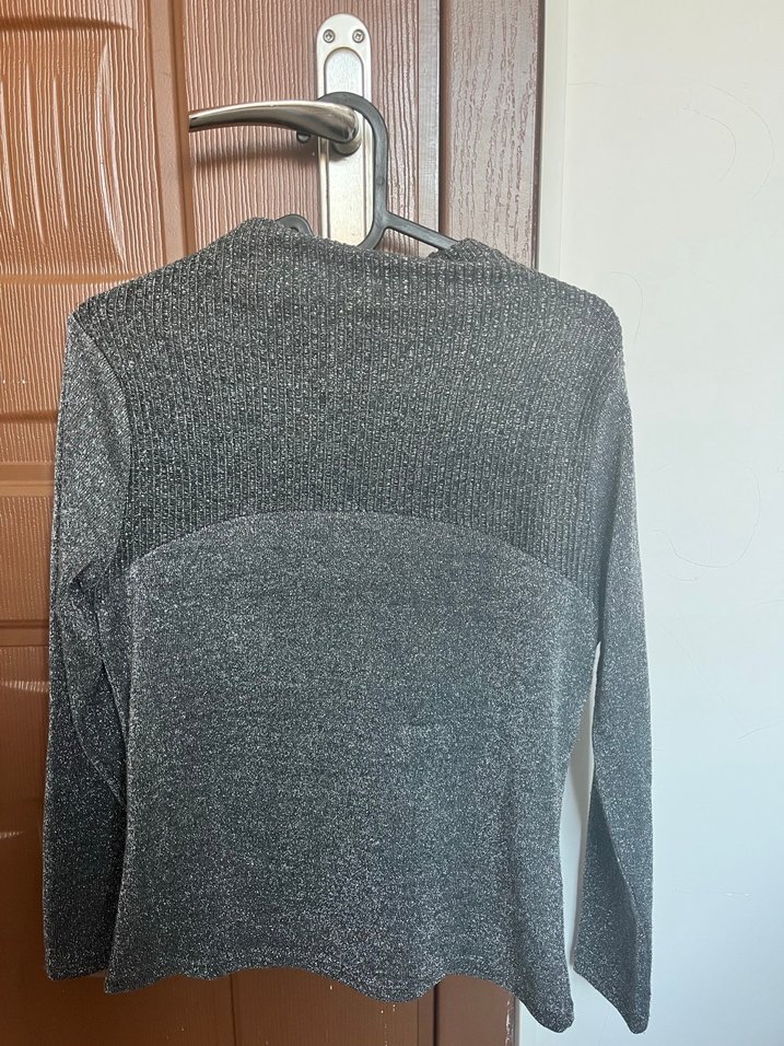 Bu kadın gri triko kazak, yarım balıkçı yaka ve uzun kolludur. Rahat, desen içermeyen yapısı ve ince kesimiyle dış mekan kullanımı için uygundur. Mevsimliktir. #koton #kazak #simli #koton