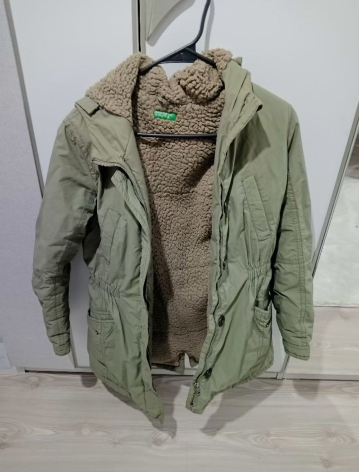 Kadınlar için gri-yeşil renkli, peluş astarlı, uzun kollu, normal boy midi ceket. Salaş kesimli ve yaka detayı bulunan bu dış giyim ürünü, sıcak tutar.Kusursuz, 11-12 yaş xs uyumlu