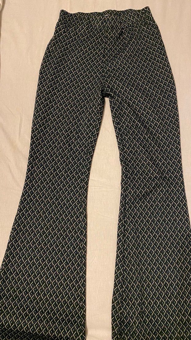 Kadınlar için yılan desenli, elastik bel bantlı, regular fit ve uzun ispanyol paça pantolon, yumuşak sentetik kumaştan, rahat sokak stili için uygundur.
