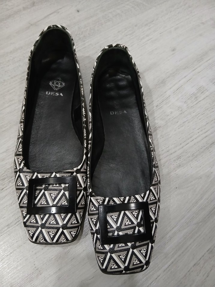 Kadınlar için koyu gri yılan desenli, tokalı ve blok topuklu babetler, çağdaş ve Paris tarzı avant-garde dokunuşla birleşiyor.