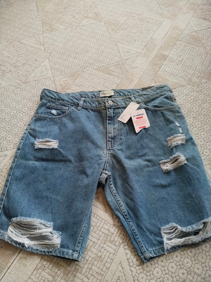 Kadınlar için bol kesim, gri renkli yırtık detaylı, kemerli kot şort. Günlük sokak stiline uygun rahat tasarım.
