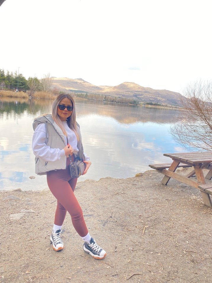 Pamuklu, gri renk, yüksek yakalı ve sıfır kol kadın şişme yelek spor üstü. Camel tonlarında, midi boy kesimiyle rahat ve şık dış mekan kullanımı için uygun.