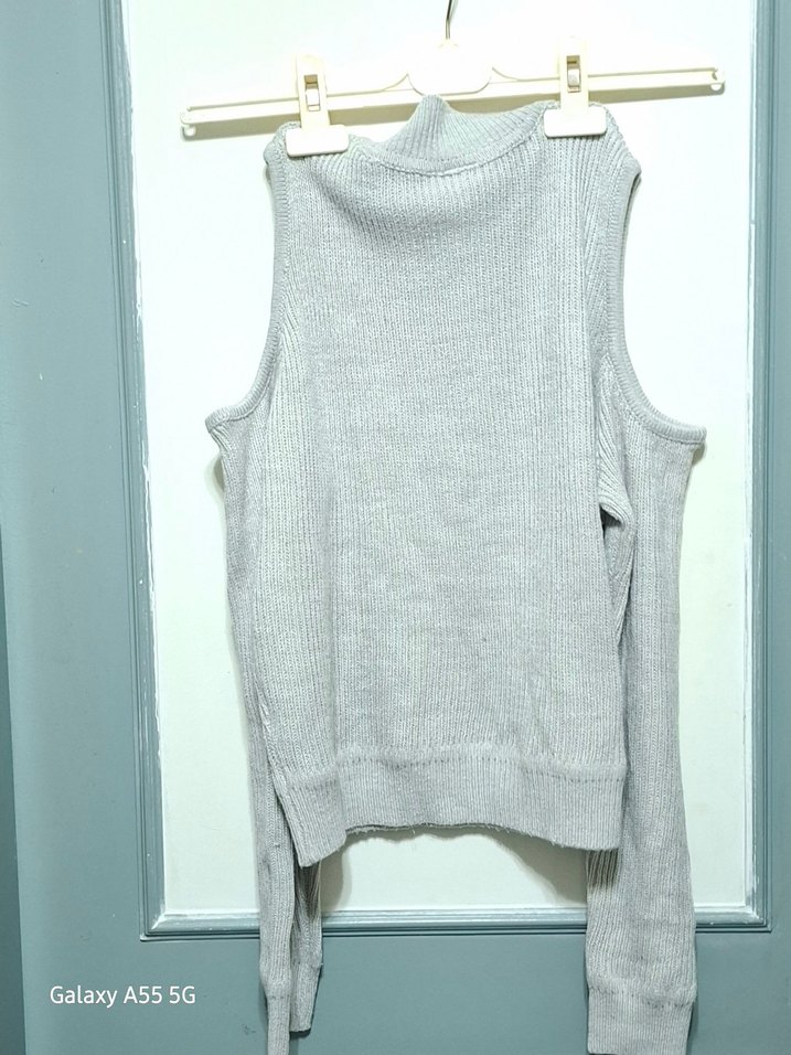 Kadınlar için kolsuz, yüksek yakalı, gri renkte yumuşak triko kumaştan yapılmış, rahat kesime sahip bir kazak. Normal boyda, günlük kullanıma uygun rahat bir sokak stili ürünü.