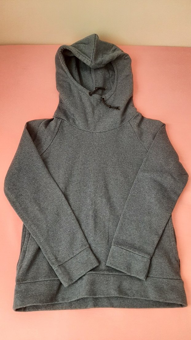 Kadınlar için fitted kesim, yüksek yakalı ve uzun kollu sweatshirt. Yumuşak, sıcak kumaştan gri renkte, günlük kullanıma uygun sade tasarım.