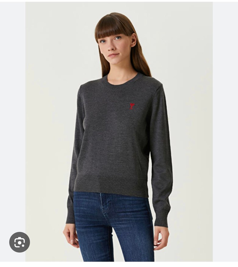 Kadın Gri Yuvarlak Yaka Örgü Yün Kazak
