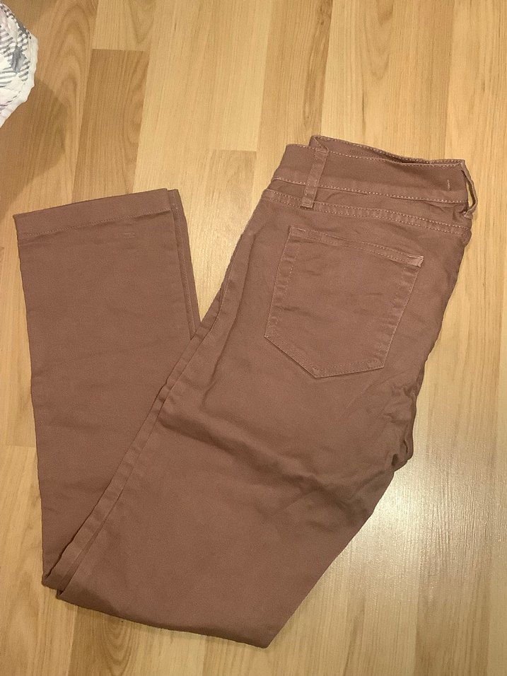 Gül kurusu kumaştan, normal kesim ve midi boyda, gündelik kullanım için zahmetsiz şıklık sunan skinny pantolon.