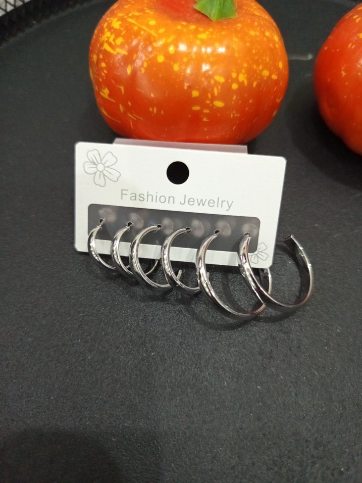 Farklı boylarda, gümüş renkli mini halka küpe seti. Pürüzsüz metalden yapılmış, günlük kullanıma uygun sade ve şık tasarım. çelik