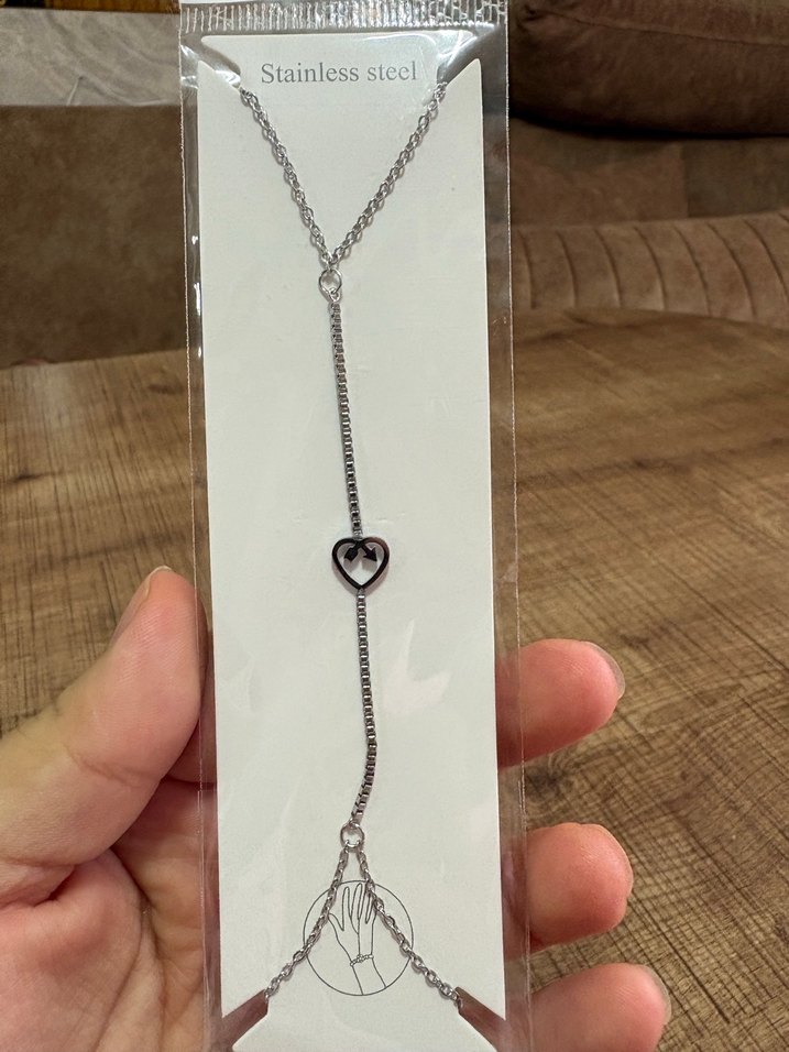 Bohem tarzda, kalp figürlü detaylı gri zincirlerden oluşan paslanmaz çelik kadın el zinciri. Minimalist ve retro stillere uygun. ✨