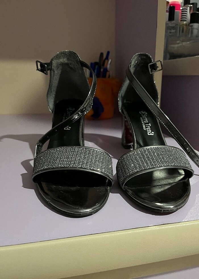 Kadın gümüş topuklu ayakkabı