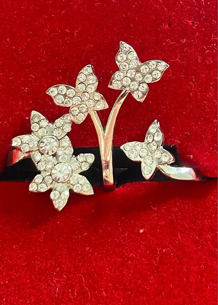 Her iki parmağa aynı anda takılıyor. Herhangi bir kusuru yok. Bir kere kullanıldı. Çiçek ve kelebek desenleri mevcut