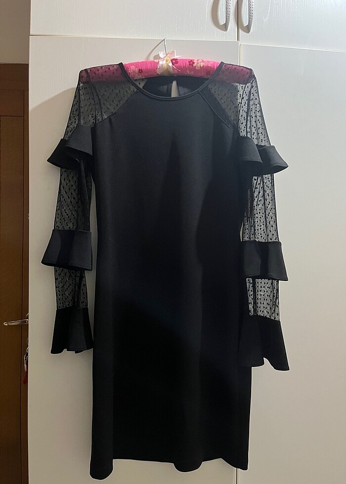 Kolları dantel ara dizlerde elbise, fermuarsız likralı rahat elbise , 1 kez giyildi