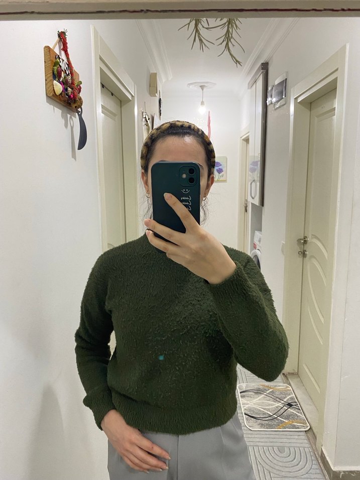 Fitted kesim, balıkçı yaka ve uzun kollu bu kadın kazağı, haki renkli örme triko kumaştan yapılmıştır. Normal midi boyda, desensiz ve rahat bir tarza sahiptir.