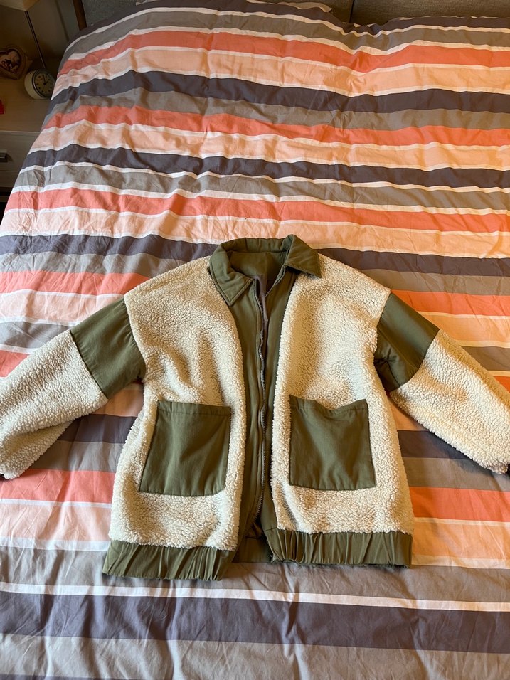 Kadın Haki Beyaz Oversize Ceket