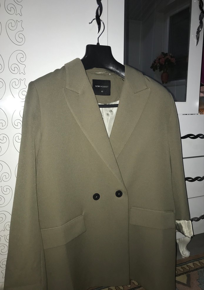 Haki renkli, düğmeli, blazer ceket ofis ve günlük kullanıma uygun sadece bir kere giydim oversize dursun diye büyük beden almıştım ama sonradan yakışmadığını farkettim ilgilenen olursa fiyatta yardımcı olurum