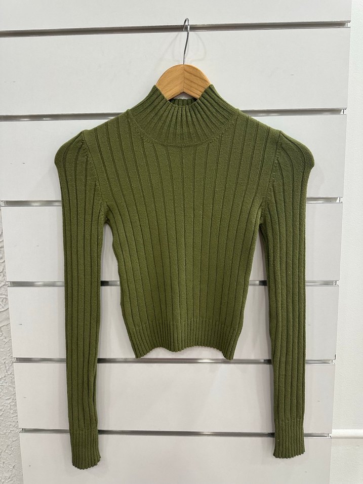 Haki Boğazlı Fitilli Triko Kazak G191