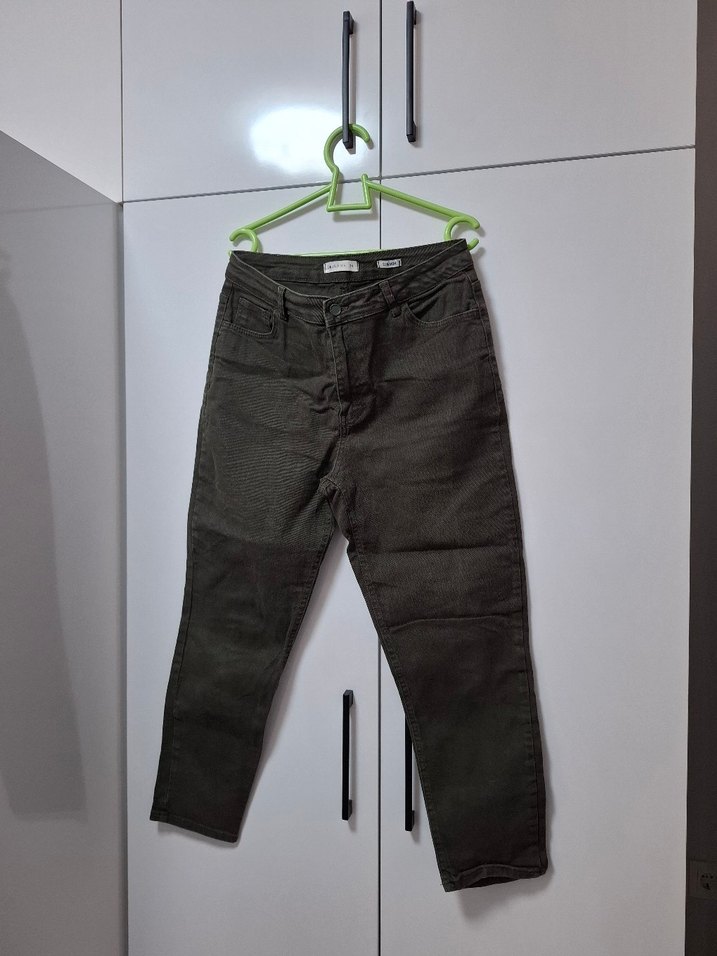 Bol kesim, kemerli haki renk mom jeans kot pantolon. Günlük kullanıma uygun rahat ve desensiz sokak stili pantolon. ölçüleri resimlerde mevcut kışlık için daha uygun
