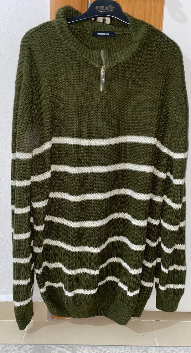 Kadın Haki Çizgili Triko Kazak