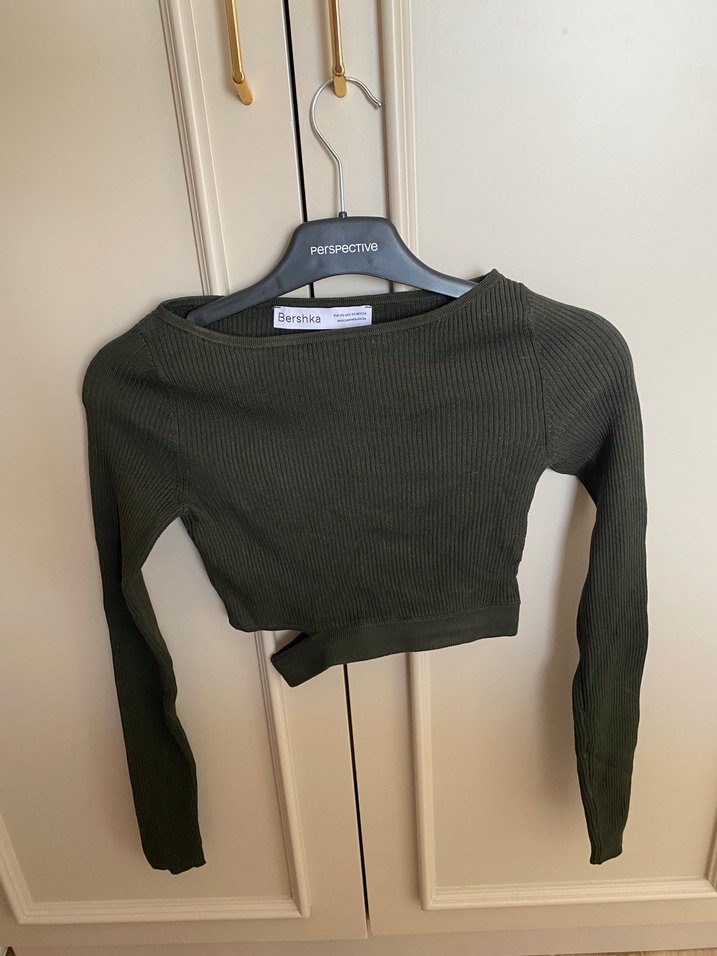 Kadınlar için uzun kollu, bisiklet yaka, dar kesim, yumuşak triko kumaştan kısa boy haki renkte sade kazak. 1 defa giyilmiştir. Hiçbir kusuru yoktur. Küçük geldiği için satıyorum.