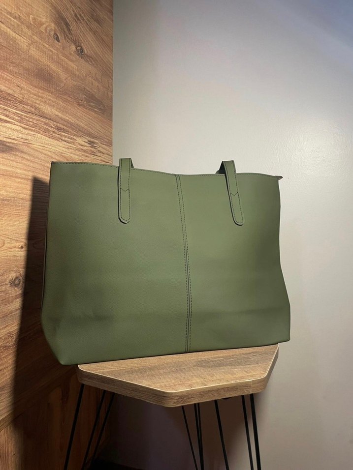 Kadınlar için haki renkli, yumuşak deri ve minimal tasarıma sahip, gündelik kullanıma uygun sade ve şık çanta. Desensiz ve çağdaş stilde.