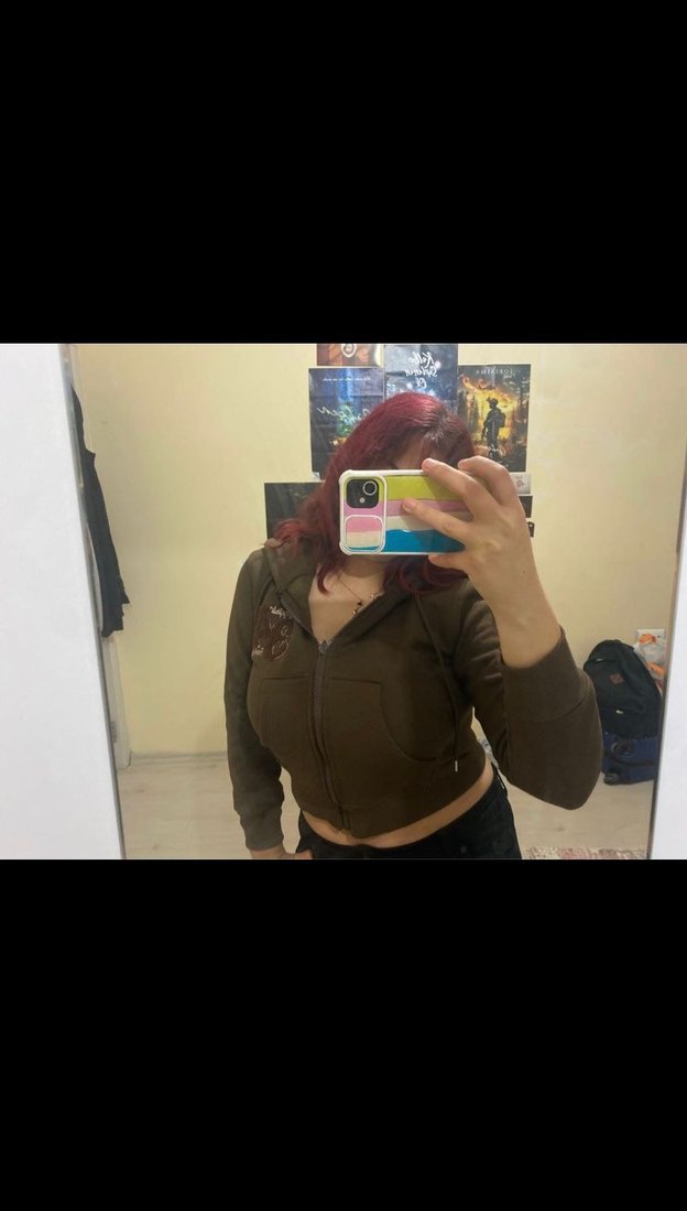 Fitted kesim, haki renkli deri hırka, uzun kollu ve straplez yaka detaylıdır. Günlük kullanıma uygun, grunge punk tarzı yansıtır.