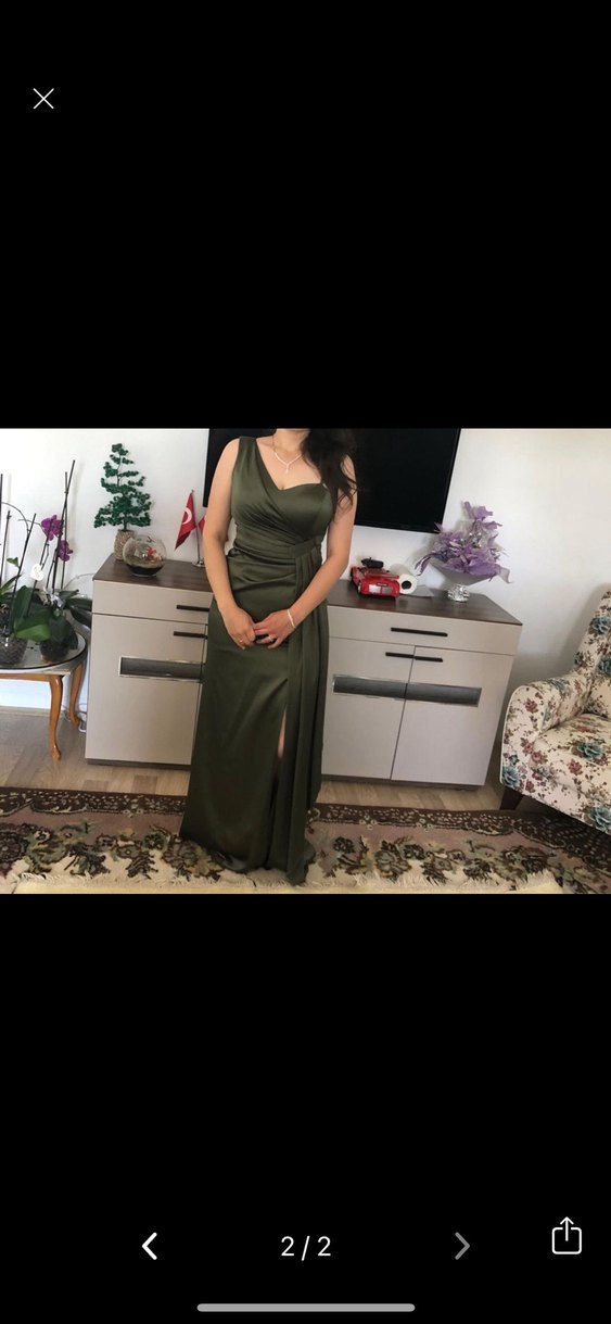 Kadın Haki Drapeli Uzun Abiye Elbise