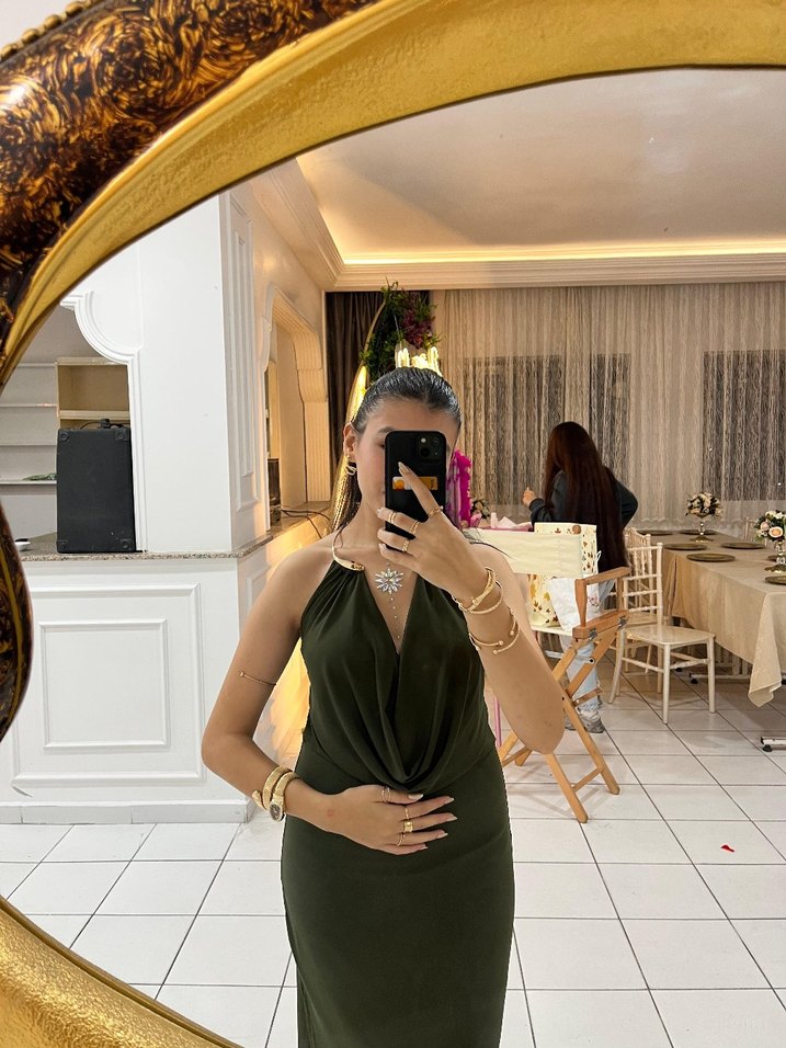 Bir kez giyildi çok rahat şık bir parça. Elimde fazla elbise olduğu için satıyorum gold takılarla efsane oluyor