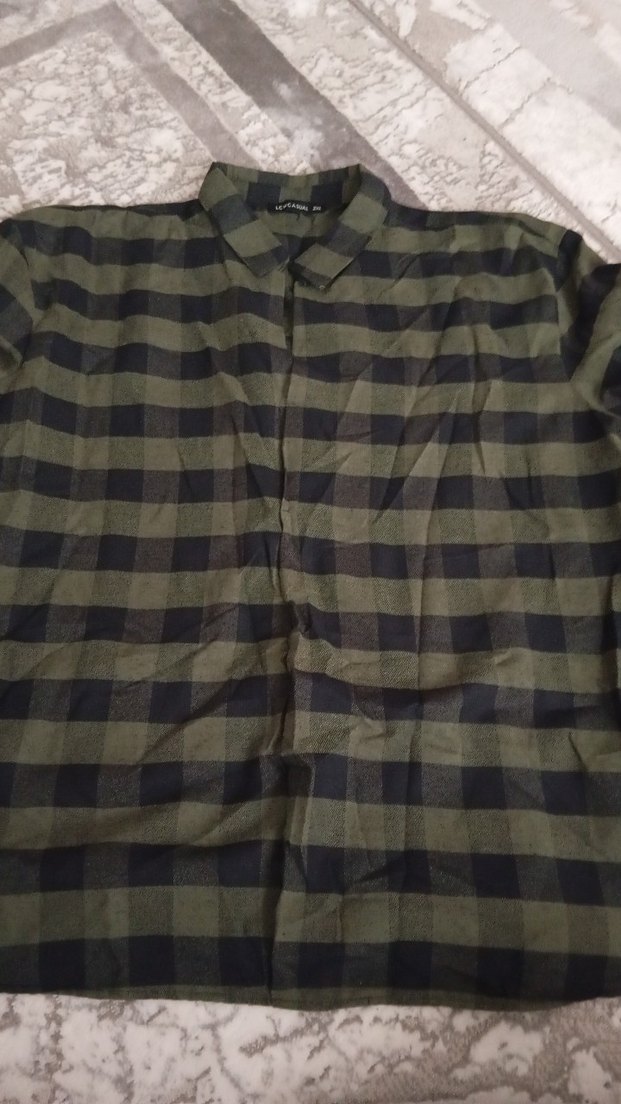 Keten kumaştan, düğmeli, uzun kollu, yakalı ve bol kesim haki renk kadın gömlek, günlük rahat kullanım için uygundur.