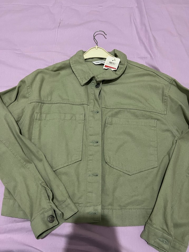 Salaş kesim, uzun kollu haki ceket, düğmeli ve çıtçıtlı. Notlu yaka ve iki cep bulunur, günlük kullanıma uygun.