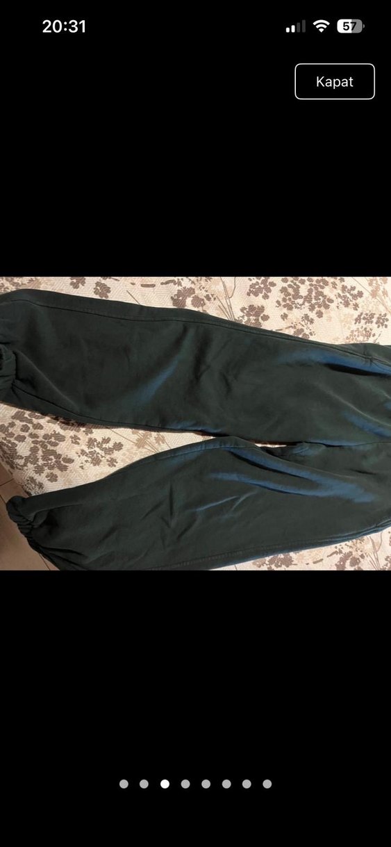 , midi boy, koyu yeşil renkte, yumuşak sentetik kumaştan kadın eşofman altı , rahat kesim, günlük ve sokak stiline uygun.