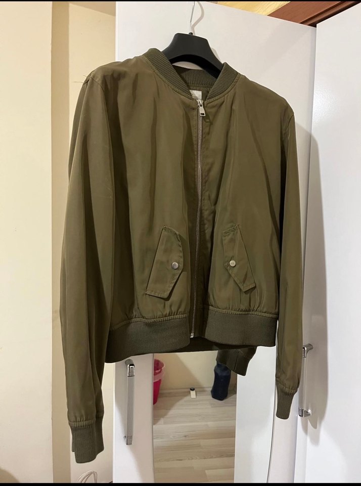 Kadınlar için fermuarlı, uzun kollu ve dar kesim haki renkte sentetik kumaştan günlük kullanıma uygun ceket. Bel hizasında bitiyor . Koltuk altinda dikis vad biri cok belli olmuyo aka digeri az belli oluyor fakat koltuk alti oldugu icin ikisi de gozukmuyor kilo aldigim icin satiyorum