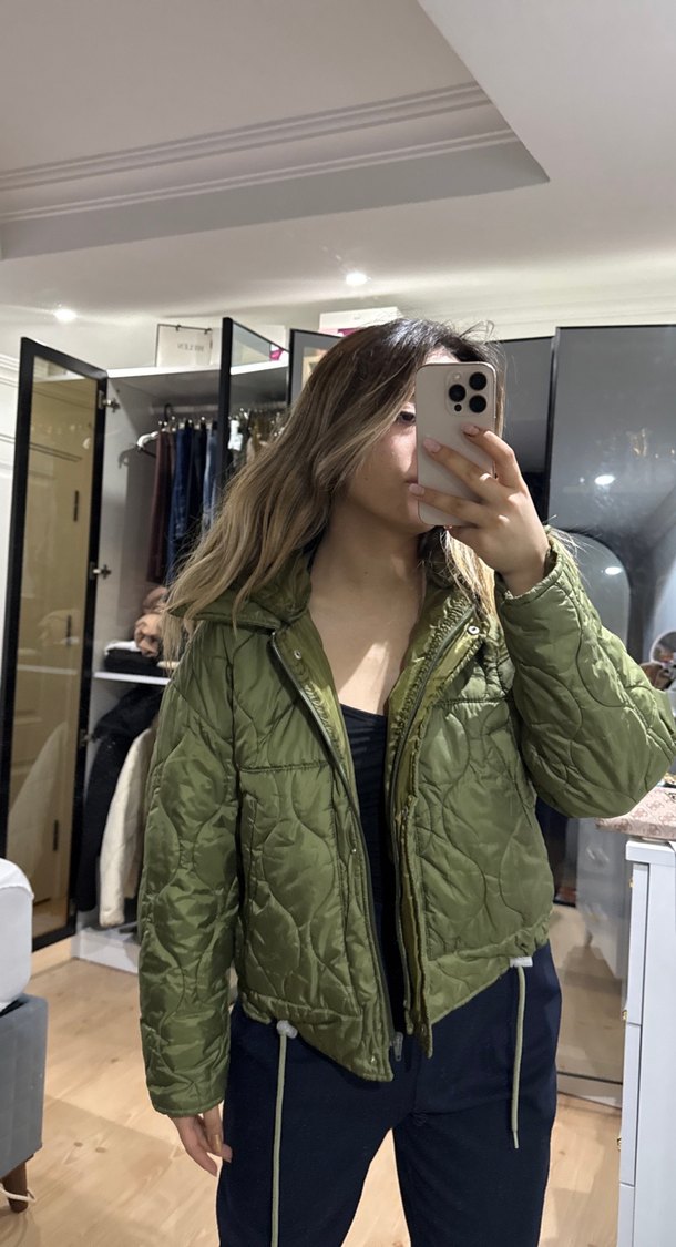 Kadın Haki Fermuarlı Kısa mont