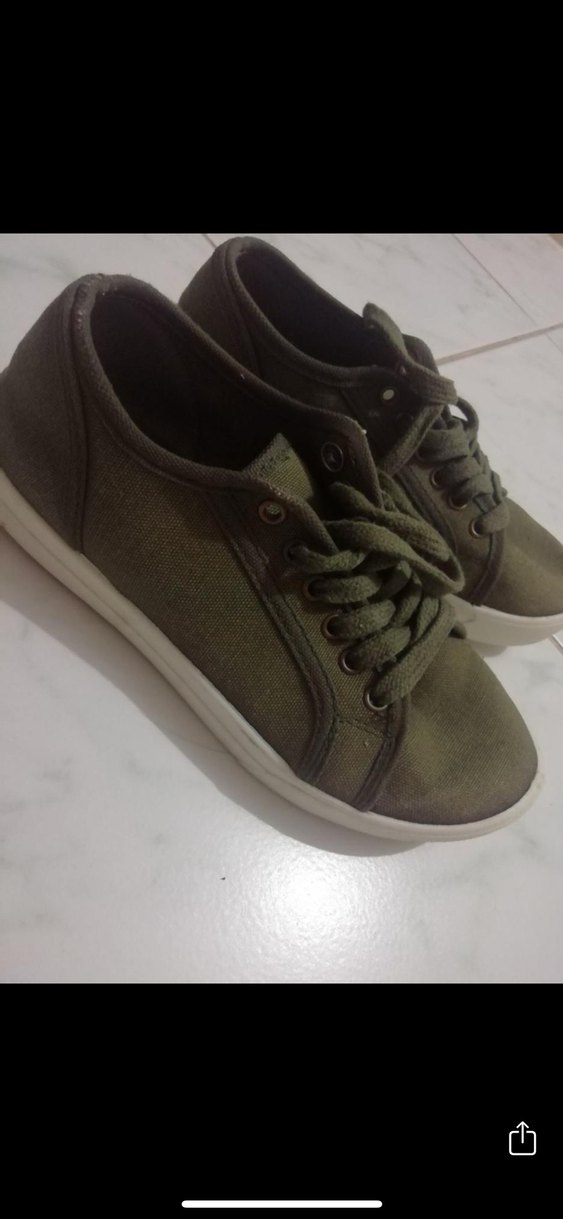 Kadınlar için haki renk, ve kauçuk tabanlı günlük ayakkabılar. Desensiz tasarımıyla rahat ve şık bir görünüm sunar.