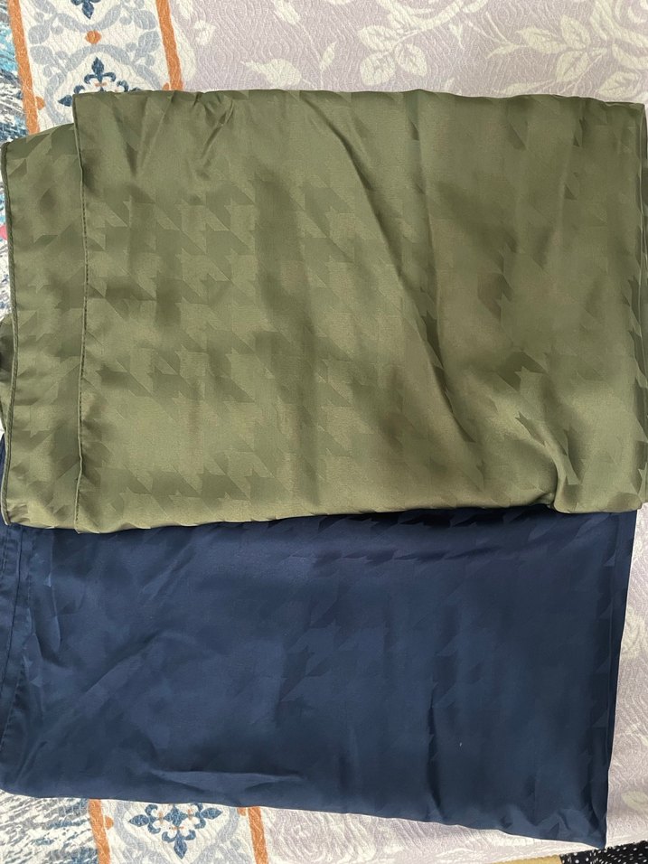 Koyu haki renkte, sentetik kumaştan kadın drapeli sargı şal, sade ve minimalist tarzda.