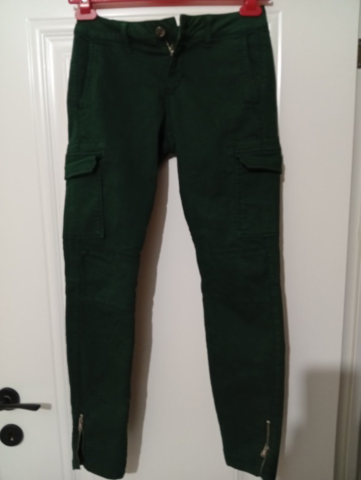 Kadınlar için fitted kesim, koyu yeşil kamuflaj desenli, fermuarlı detaylara sahip denim pantolon. Günlük kullanım için uygun, sokak stili rahatlığı sunar. boy 94 paça 16 bel 36