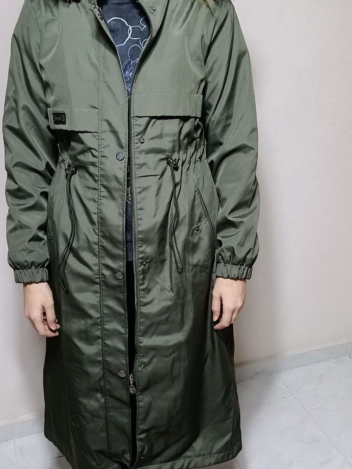 Kadın Haki Kamuflaj Kemerli Mont