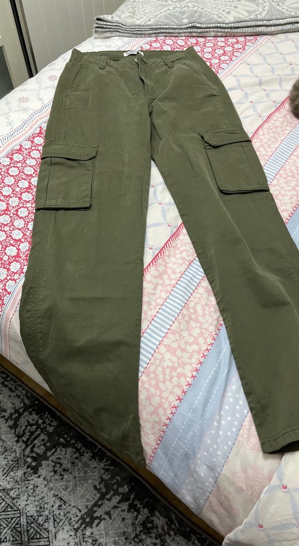 Kadın Haki Kamuflaj Kemerli Rahat Pantolon