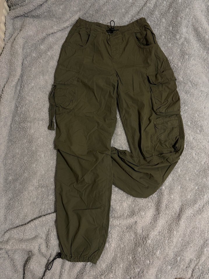 Kamuflaj desenli keten kumaştan, bol kesim, bel kemerli haki kargo pantolon. Midi boy, dış mekan rahatlığı için uygun, ayarlanabilir paça detayı bulunur. ️