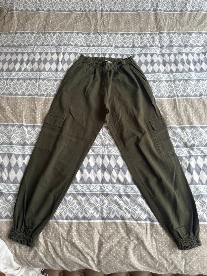 Kadınlar için gevşek kesim, haki renkli kamuflaj desenli pamuklu pantolon. Elastik bel ve bilek kısmı ile rahat bir kullanım sunar. S bedene de olur